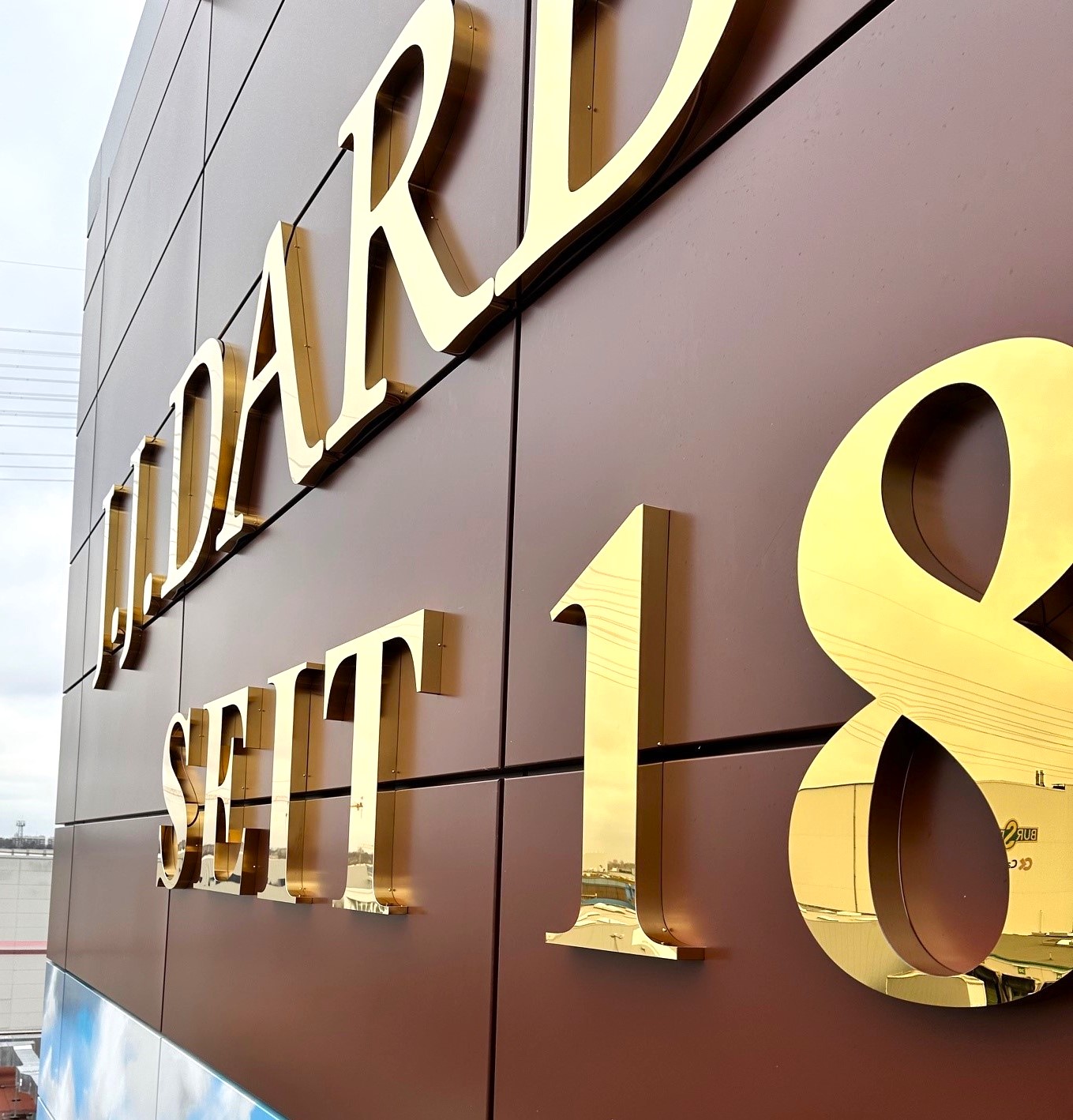 RVS profiel 01P GOUD spiegel incl. PVC-bodems. De diepte van de letters is 5 cm.