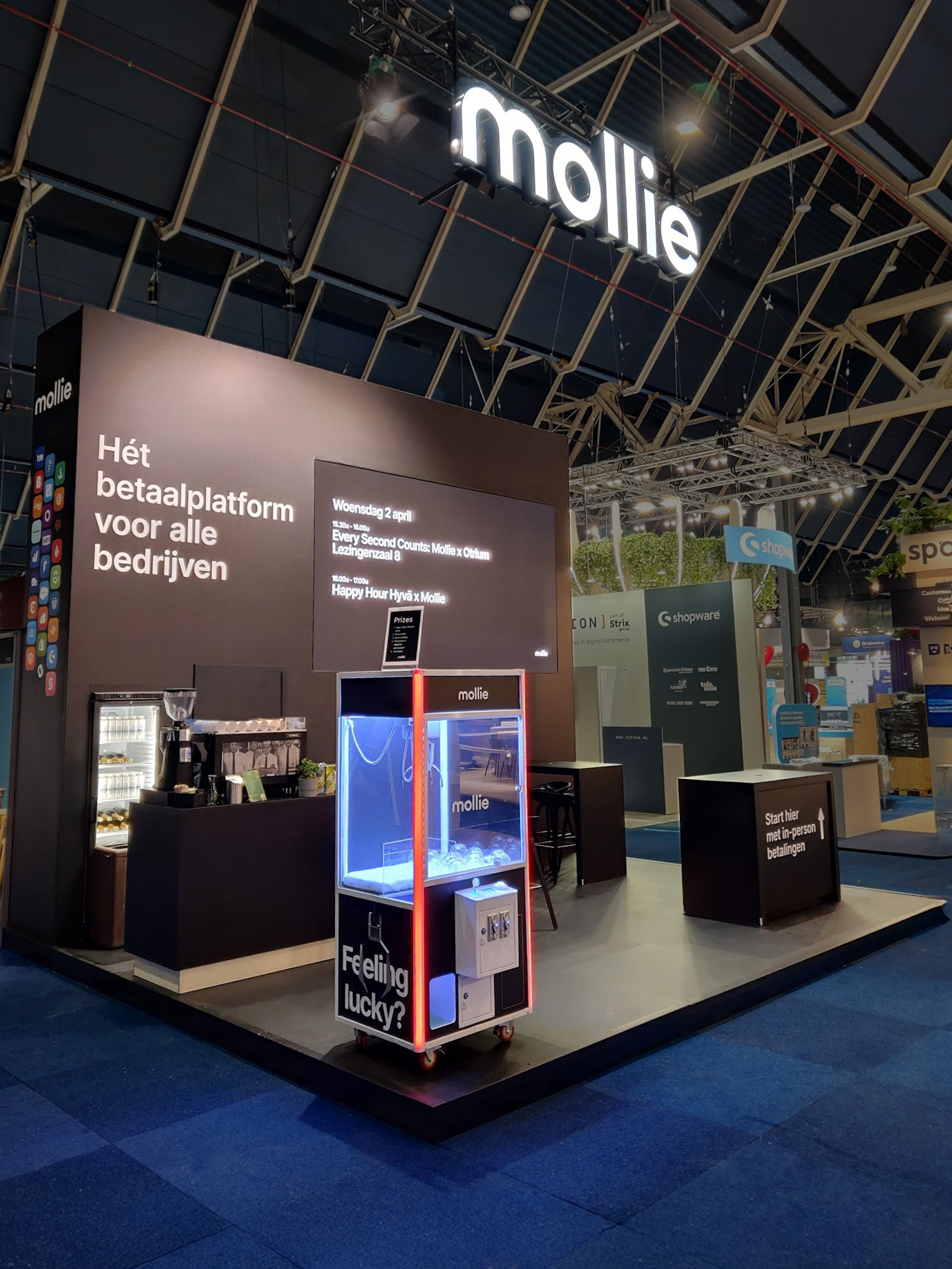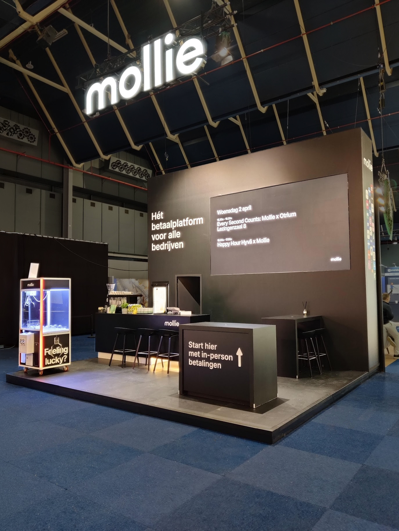 Voor betaalplatform Mollie maakten wij gevelreclame met doosletters in profiel 5 met LED. De letters zijn gemonteerd op een hangend frame.